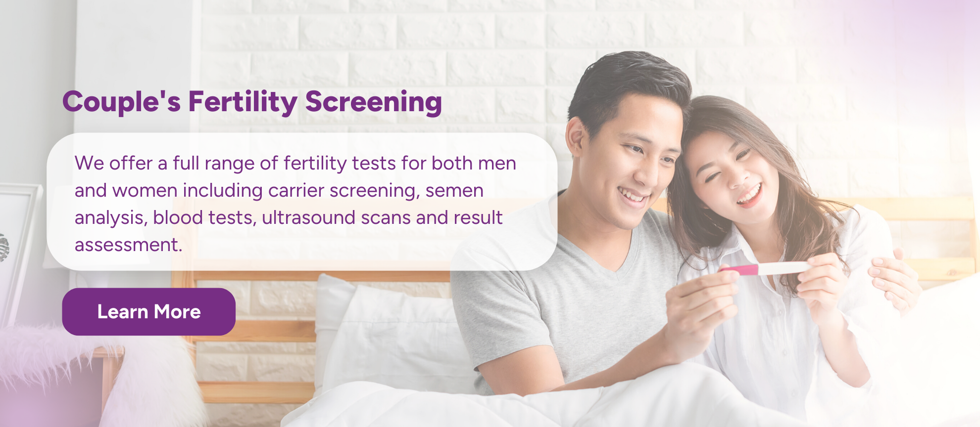 Every couple’s fertility challenges are unique. Our specialists will work with you to tailor our service offering to your needs, inclusive of suitable fertility screening tests and treatment options.