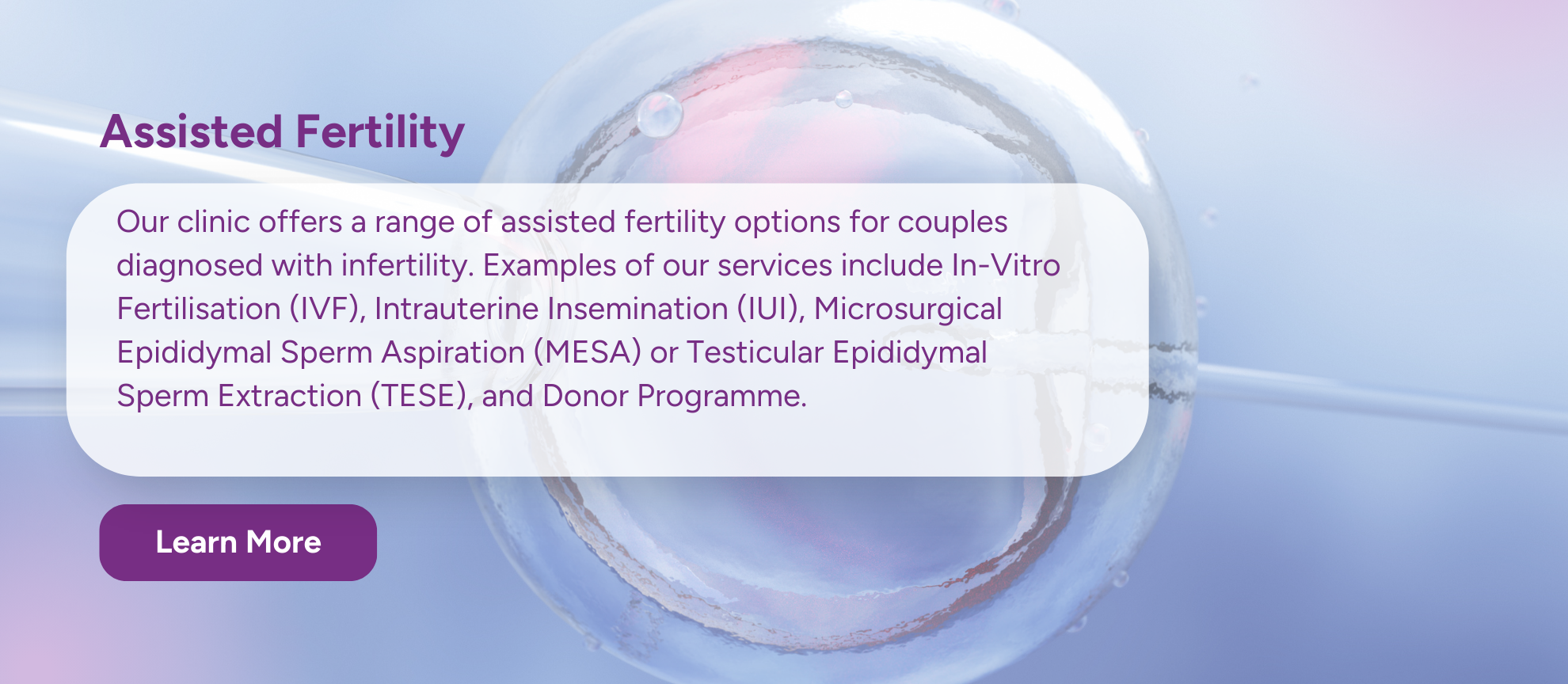 Dealing with fertility issues can take its toll on your well-being. We are here to help you at every step of the way, whether it’s through counselling, informational talks or assistance for international patients.
